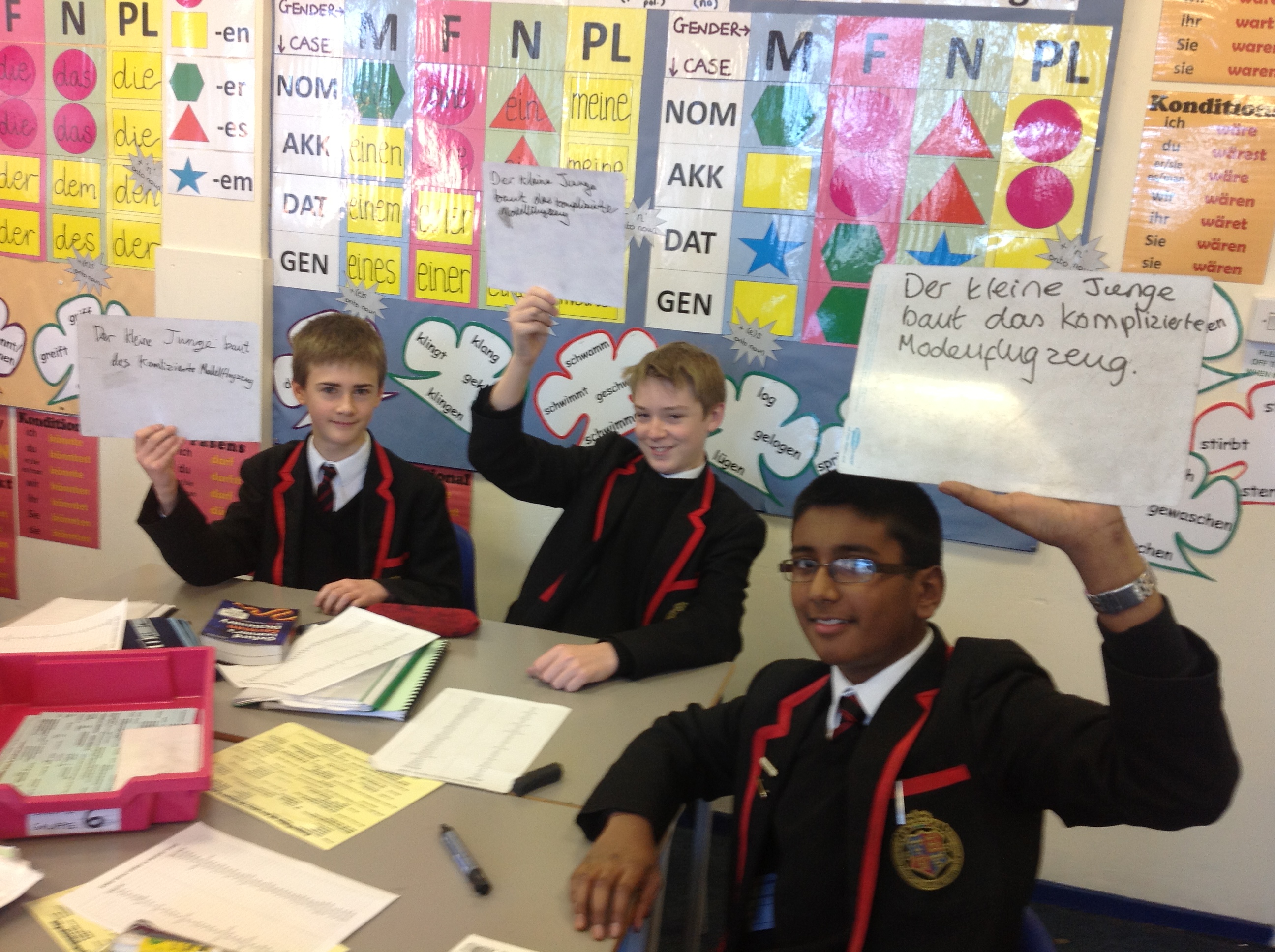 As confident language learners in their first language, it is easy for Year 9 to approach a task like this with confidence. Using dictionaries, the grammar hub display and peer instruction, they work out how all the sentence is structured; the tenses, cases and word endings. Here is the response from one group after 10 minutes or so: