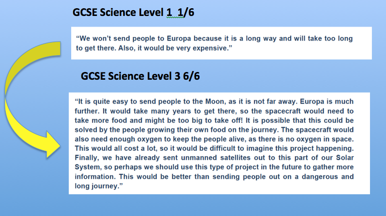 In Science, we might talk about understanding and explaining concepts and producing answers of increasing sophistication: