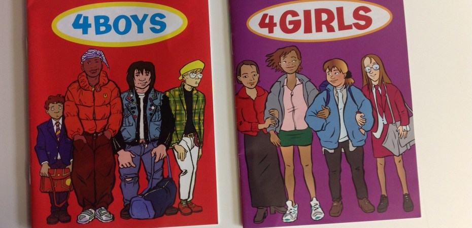 From the start, I set the tone, getting the balance of openness with safeguards against negative peer pressure. I then give the 4Boys 4 Girls leaflets out again… and ask them to open the front cover to see the bodies.