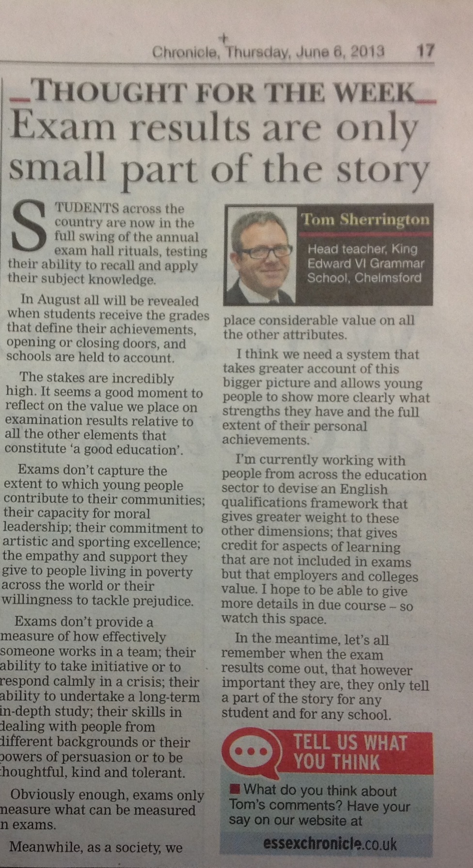 In the meantime, let’s all remember when the exam results come out, that however important they are, they only tell a part of the story for any student and for any school.