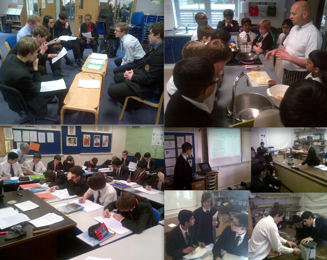 My slides included some images from lessons at my school, showing that learning takes many forms… with traditional ‘heads down’ essay writing integrated with group work, on-line resources, student-led instruction, peer support, tightly focused drills and more open-ended explorations…