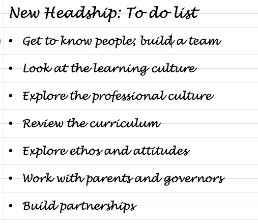 The issue of teaching quality will be a high priority. As I’ve said in my post ‘how do I know how good my teachers are?’ I’ll need to look at data and see everyone teach but it will be the more ephemeral reputational knowledge that will take time to gather and evaluate. I’m looking forward to getting to know my new SLT, building a strong team spirit and establishing the dynamics for working effectively. That’s exciting.