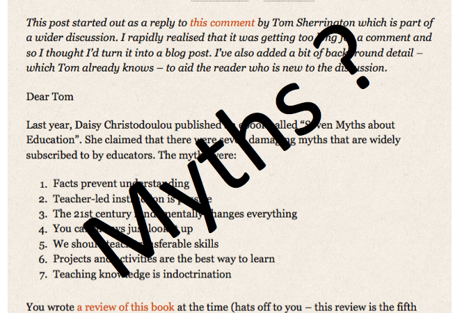[…] for me is how many people have denied there is any evidence of these myths at all or, as in this case, agreed that they exist but argued that they do not explain the any weaknesses of our education […]
