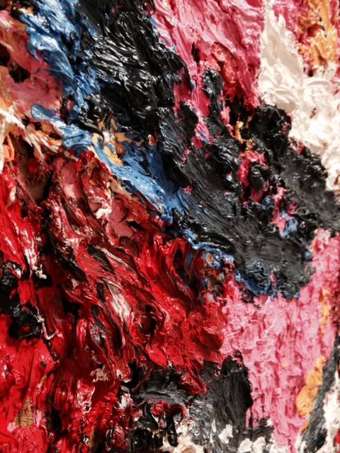 Last weekend I went to visit his incredible exhibition in Highgate.  It’s not just the scale and energy of his work – and the thickness of the paint – that are striking; it’s his personal engagement with it all; the way he talks about it and where it all comes from.  He’s wonderfully humble; self-deprecating and modest. The work does the showing-off for him. In some style.
