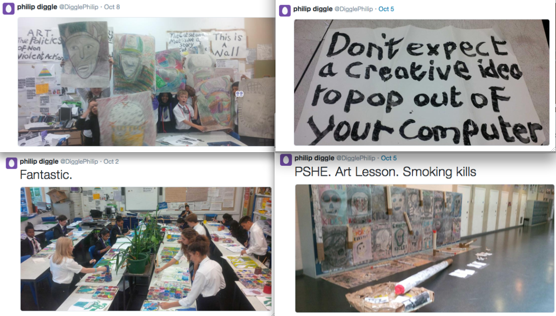 And the things that go on in the classroom are wonderful.  So many parents and students have gone out of their way to tell me how inspiring he is.  He’s recently started a twitter account @DigglePhilip which he uses to share his work and his thoughts. ‘Notes from A Bus’ provide a regular source of joy and reflection.