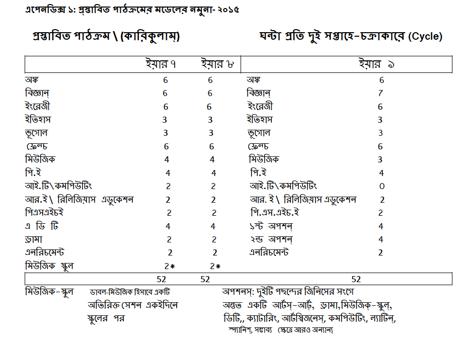 The document sets out the rationale for the weight given to each subject and for the timing of the school day.