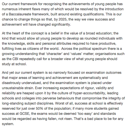 My essay, A National Baccalaureate for England,  can be read in full here: