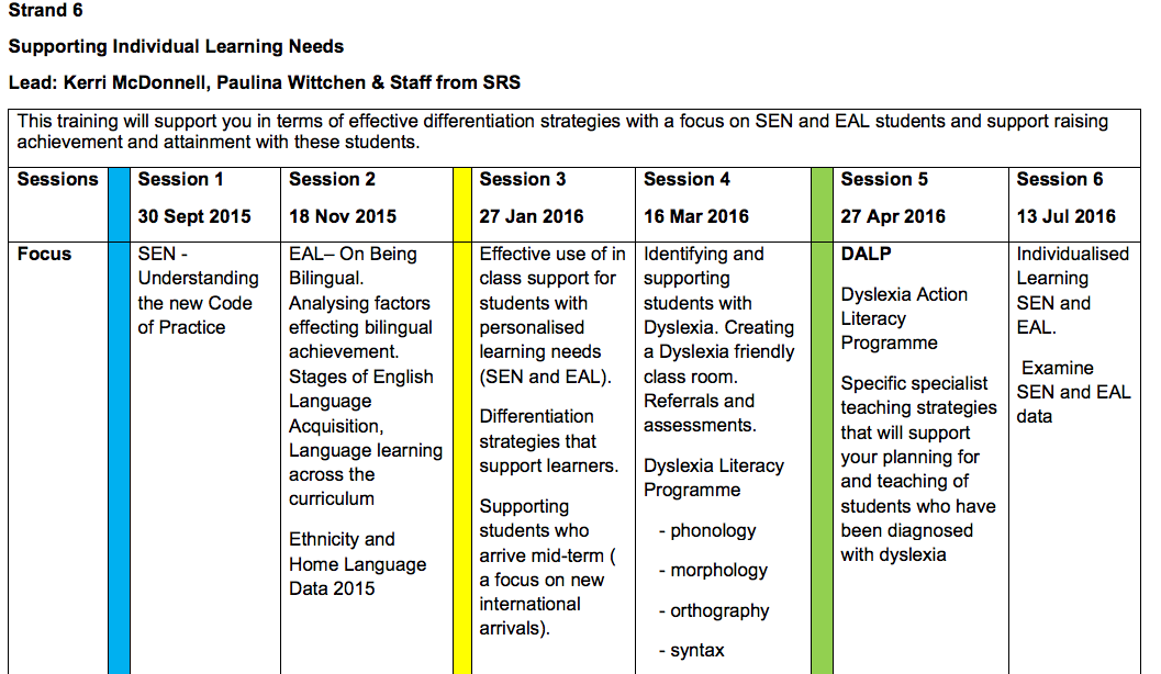 The other 6 half-termly sessions are designed to provide some other strands of CPD that run across departments. Teachers and support staff have to choose one strand to follow for the year.