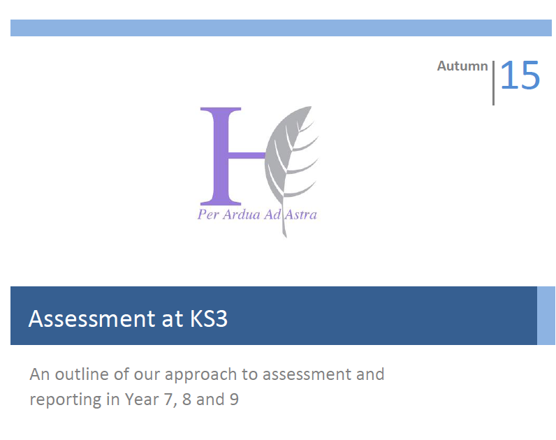 Having explored different ideas about assessment at KS3 during the last year, we’re about to move forward with our approach. Here is the explanatory booklet we’ve given to parents: Assessment at KS3