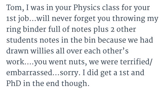 reckon I was a fellow physics students and your lab partner back at university – I was the one always messing up the experiments and getting us crap marks 🙂 great to see how your enthusiasm for physics and teaching still shines bright. and yes I remember the great That Ted…. Joe Appleton