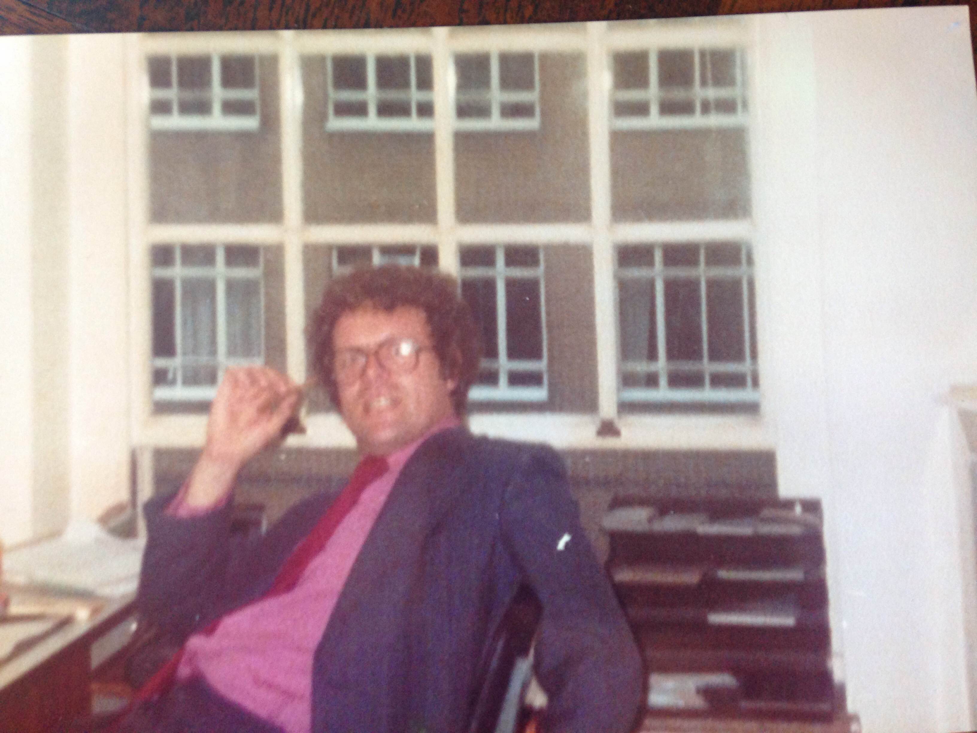 Today is my dad’s birthday. He would have been 76. As one of many follow-ons to my blog about his death in 1977, earlier this week I had the pleasure of meeting Pat, my dad’s PA at the British Council in the mid 70s. She contacted me after finding my blog and it was lovely to meet her; someone who knew my dad in a different context to the one I knew him in. She gave me this photograph of him, taken at his desk at the British Council office in Tavistock House: