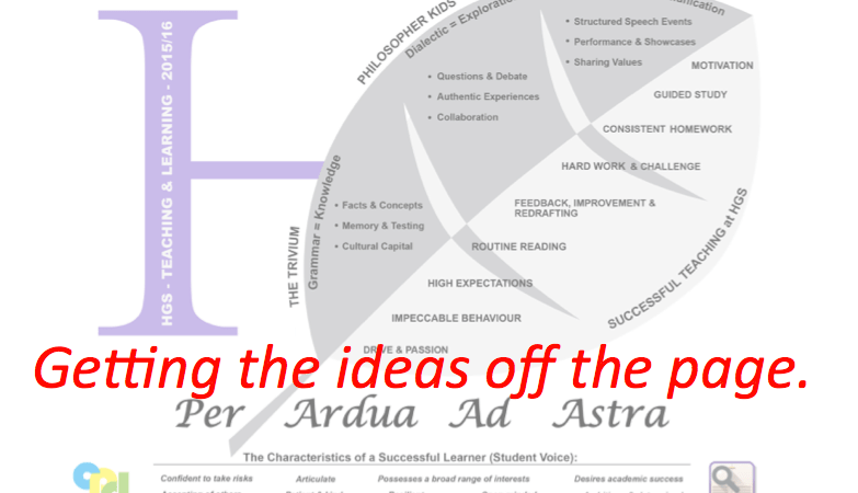 This post is essentially a copy of a message I’ve given to my staff, collecting some required reading to inform the next phase of the development of our curriculum and our approach to teaching and learning. Hopefully you will recognise the Trivium in this; these ideas are ways of making things happen more deliberately and explicitly so that the conceptual ideas become more tangible and feature in the experience of HGS students every day. Our first run at devising a Highbury Grove model for Teaching and Learning last year captured lots of ideas but, now, we need to focus on fewer specific areas to make sure the default practice has shifted fundamentally; that the experience of every student is shaped more deliberately and consistently by all of us.