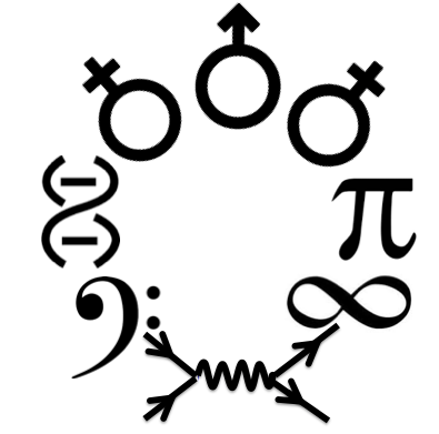 PS: In case you were wondering, the image at the top is just a doodle/design I’ve been tinkering with for a while; symbols that capture the things that inspire me:. Perhaps this could be the @teacherhead coat of arms! My family sits at the top; DNA, for the wonders of life and living things; pi for the physical wonders of nature – beautiful in its complexity and simplicity; infinity – for life’s infinite possibilities and the endlessness of space and time; bass clef – to represent music, a central feature of most of our lives; and the Feynman diagram. This is a particle-antiparticle annihilation/production diagram – a symbol of continual re-birth from the awe-inspiring world of particle physics.