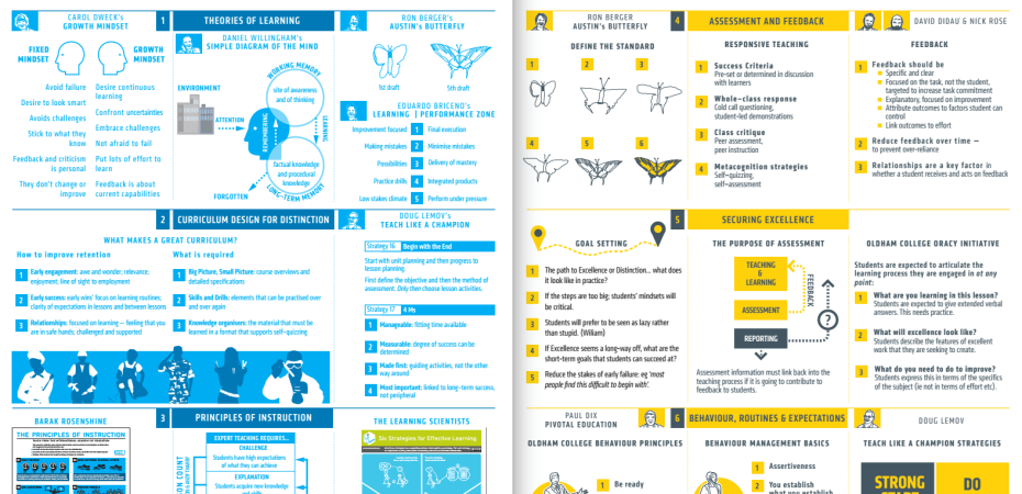 I’m looking forward to returning to Oldham College in October where I’ll be spending two days looking at lessons and talking to staff to see how things have started. In November we’ll push things on again and again in January. This way, staff have a great chance of developing their practice in a rigorous manner. It’s already become part of the shared language amongst staff in different faculties. People are talking about Austin’s Butterfly- as a code for defining excellence and raising expectations; people are discussing knowledge organisers and retrieval practice; there’s a lot of discussion about mindsets and feedback. It’s really genuinely exciting to be involved with a programme on this scale of ambition and commitment.