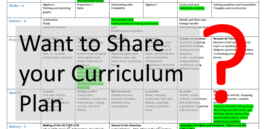 If you are willing to share your detailed curriculum plan, even if it is just a link to the relevant part of your school website, please complete the form below with the required information linking to your curriculum plans. I will add them to my list from time to time.