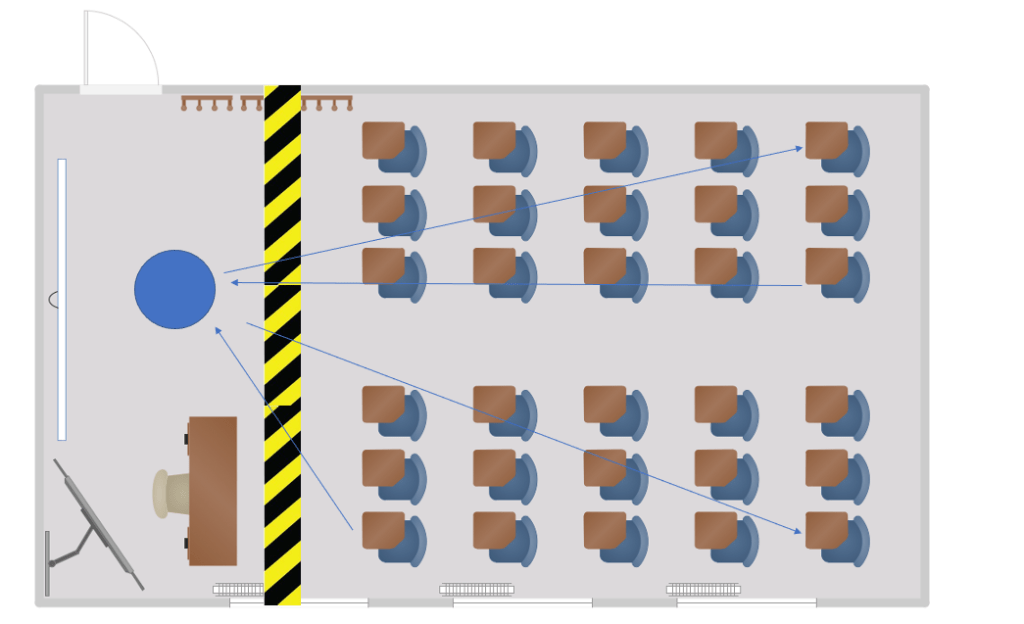 In a number of CPD webinar sessions recently I’ve been asked for advice from teachers wrestling with the challenge of teaching from behind the Covid safety line; the taped-off teacher zone. How do you follow through on various elements of teaching practice if you can’t move in amongst students and see what they’re doing close up?