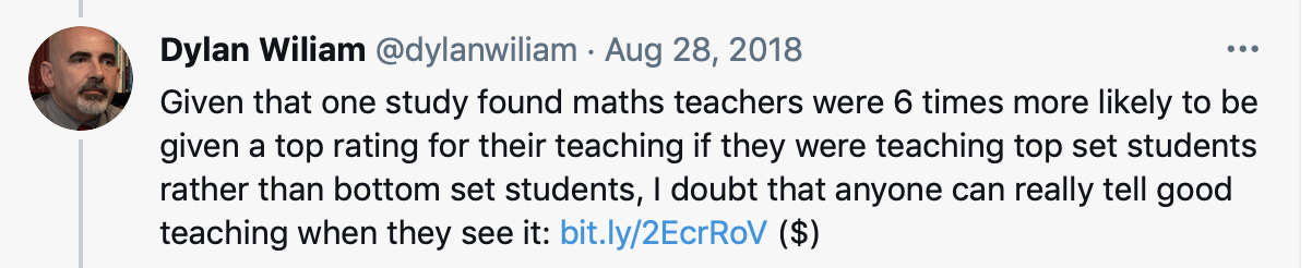 Just for instance, here’s Dylan Wiliam on the subject:
