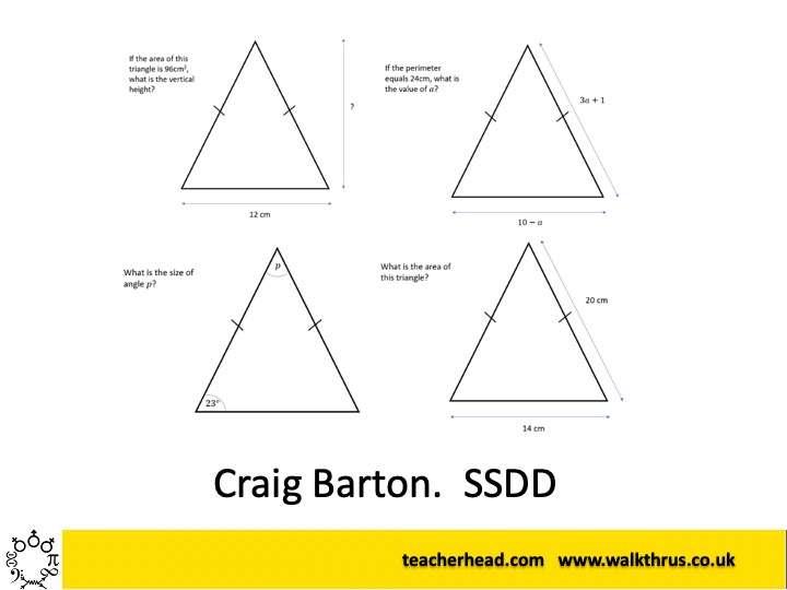A strong example of developing students’ independent thinking, with ‘cue’ removed, is the use of Same Surface, Different Deep structure maths problems – as in Craig Barton’s superb site. Students learn the habit of approaching problems with the same initial enquiry: ‘what do I need to do?’ They learn not to panic but to explore their knowledge over a range of topics and concepts to find contender strategies to solve the problem. This approach can be developed in other subjects.