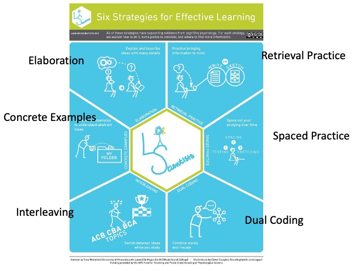 It’s important to remember that the strategies promoted by the awesome Learning Scientists are designed for students to use themselves: they are study strategies, not teaching strategies. That said, it’s important to model each of them explicitly so students know how to use them. However, students can develop their agency around effective studying, using retrieval practice and space practice, for example.