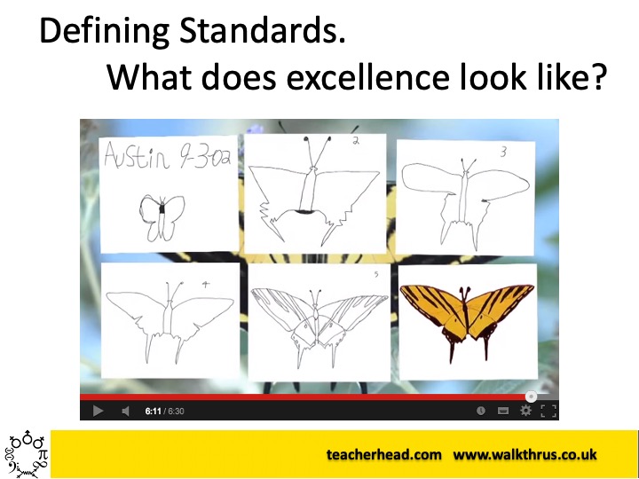 As Ron Berger illustrates in the classic Austin’s Butterfly video, involving students in processes such as peer critique, supports them to develop a sense of standards and progression pathways: ie knowing what excellence might look like and what steps we might take to reach it.