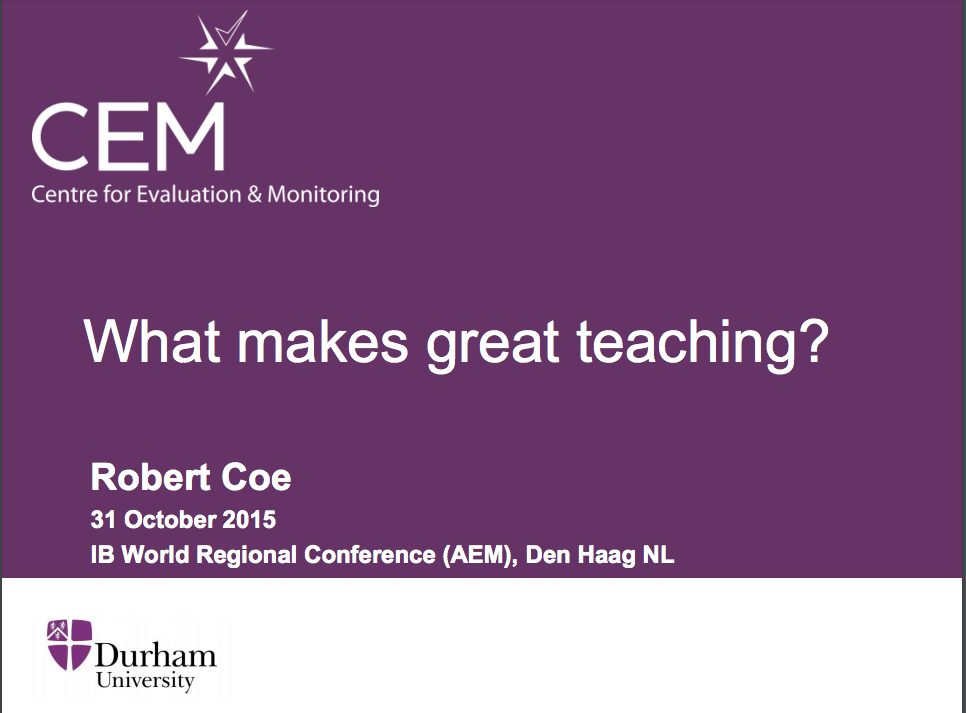 One of the very best pieces of work in communicating education research is the What Makes Great Teaching report from 2014. Around this time Professor Rob Coe (@ProfCoe), one of the report’s central authors, was doing fabulous work sharing the key ideas from the report in various presentations. Here is one example: