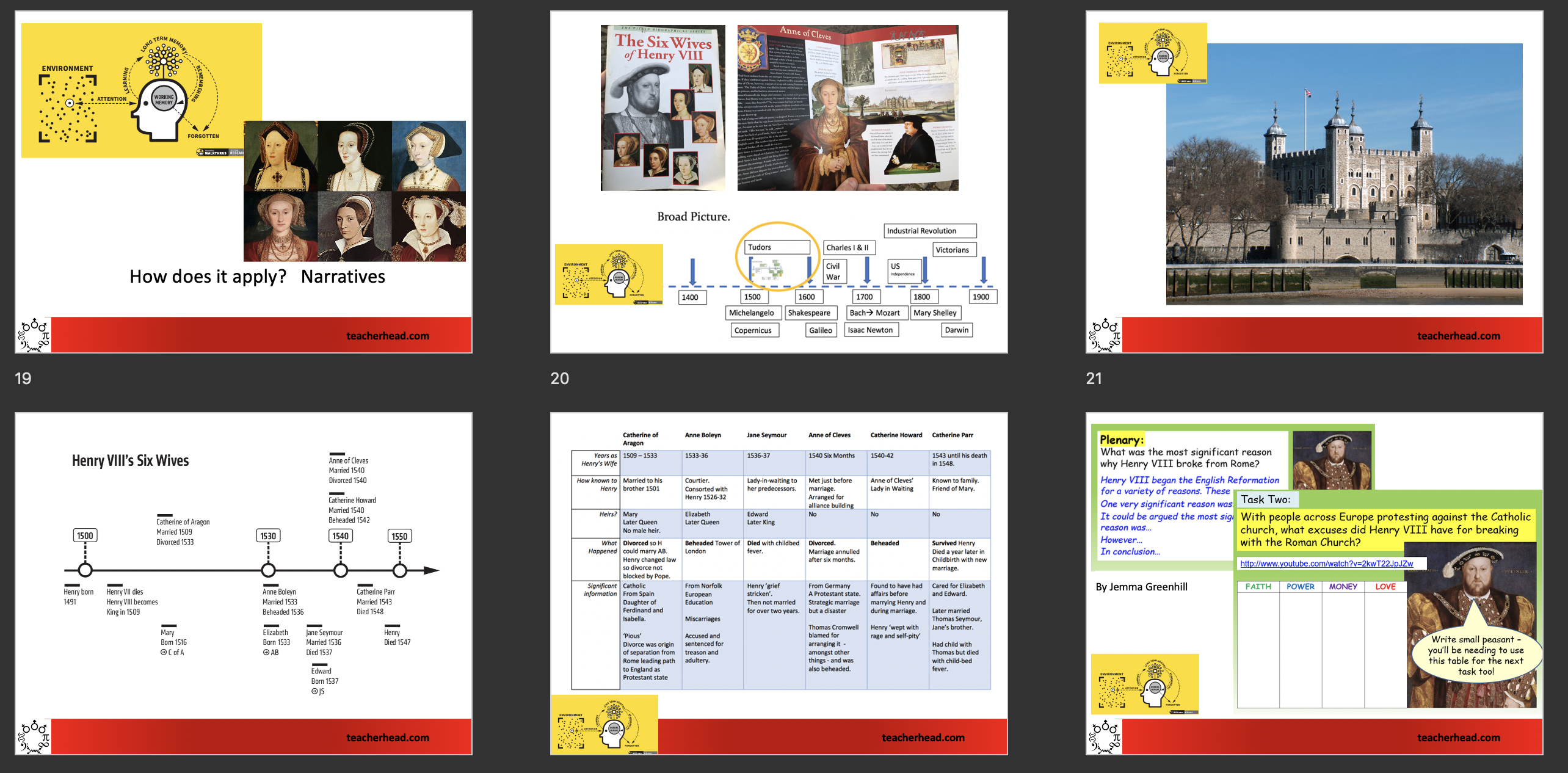 In the study of the Tudors featuring Henry VIII and his six wives, a lot of background knowledge is needed to understand the themes, narratives and significance of the story. I explored my own battles with learning this story here: How not to misfire.. exploring the learning process with Henry VIII. There’s a lot to take in, linking famous buildings (eg the Tower of London), images (Henry and his wives), the wider timeline, a huge range of historical details and themes. At a basic level it’s necessary to know about the monarchy – that there is a history of Kings and Queens going back centuries – and the approximate position of this story on a timeline. It’s helpful to know several key concepts: