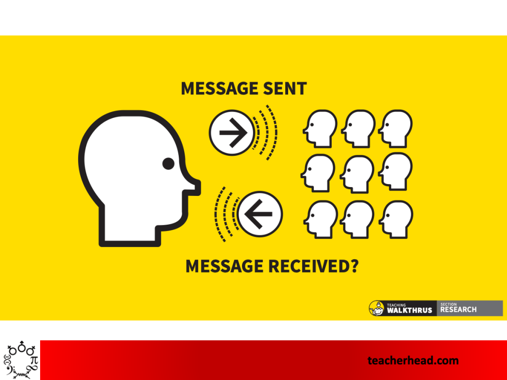 […] check for understanding. Take time to hear what students are thinking – sample the room, get into the corners, find out who is with you and what the misconceptions might be. Listen to contrasting expressions of understanding. […]