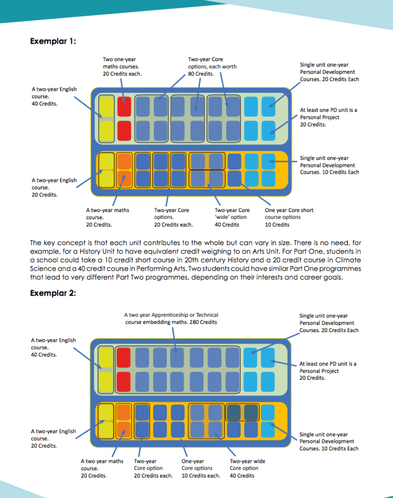We ran a consultation process in 2021 that fed into the proposals we’ve just published. I don’t want to encourage superficial reading of the proposals but this diagram might serve as a teaser – an illustration of two possible formulations of the Bacc for two sample learner.