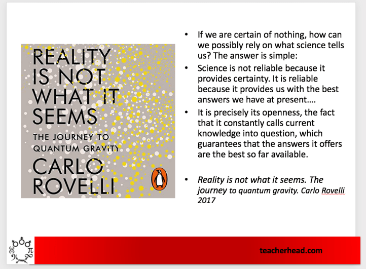 The important thing then is to refine the model continually. That’s how we remain evidence-informed. Once again Rovelli is worth quoting….