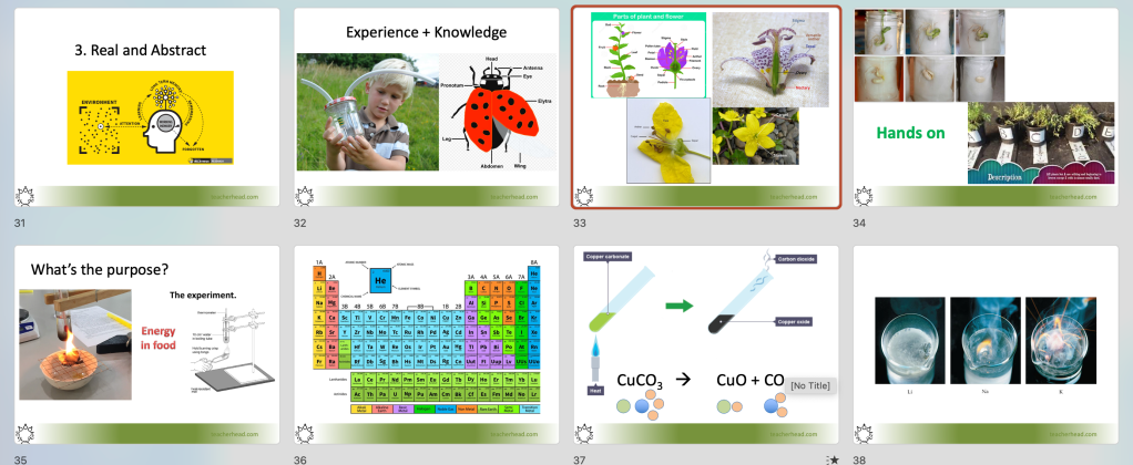 The issue here is to make the study of science about explaining and exploring real things; our abstractions are tools; they are not the real thing. Real life complexity informs the simplified models we make. So, let’s have children pooting for ladybirds, looking at real flowers and growing a bean. Each!