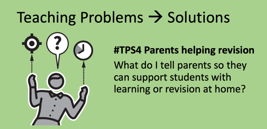 What do I tell parents so they can support students with learning and revision at home? As teachers, we want parents to help our students with their learning – supporting them without trying to do it for them! But what can they actually do? A good place to look for a detailed examination of this is Patrice Bain’s excellent book A Parent’s Guide to Powerful Teaching – get one for your school and promote the ideas.