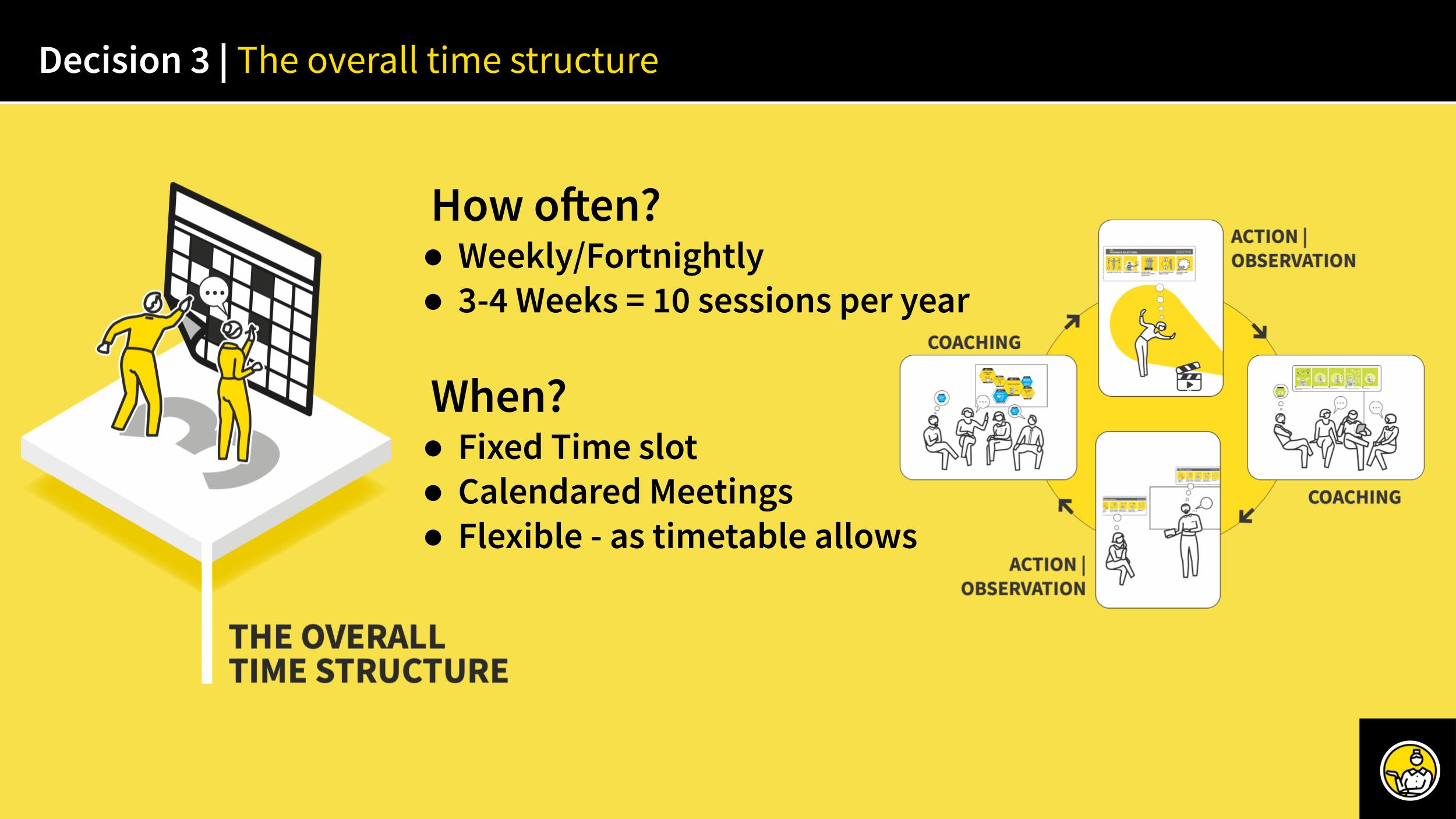 The final decision is around the nature of all the activities that happen in between the key coaching sessions. How do teachers and leaders know how things are going? How do teachers get a reality check on their practice – so we’re going beyond the simple self-reporting that can often miss details of what goes on in the corners of the class. There are lots of options from teachers videoing themselves to peer observations or, very commonly, learning walks by team leaders. Is so much more productive when coaching sessions are informed by insights coaches and leaders gain from seeing practice first-hand. Of course other data can be useful – including information from assessment.