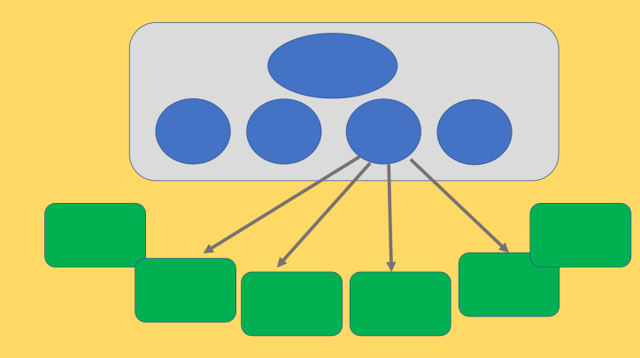 The SLT at the top comprises a Head/Principal and some supporting senior leaders, usually with specific job roles and responsibilities. The boxes represent the middle leaders and their teams. In a typical scenario, the SLT has access to a wide set of information giving them a whole-organisation overview and the team carries the sense of responsibility for overall outcomes. The SLT spends time exploring problems and strategies, perhaps debating priorities and timeframes.