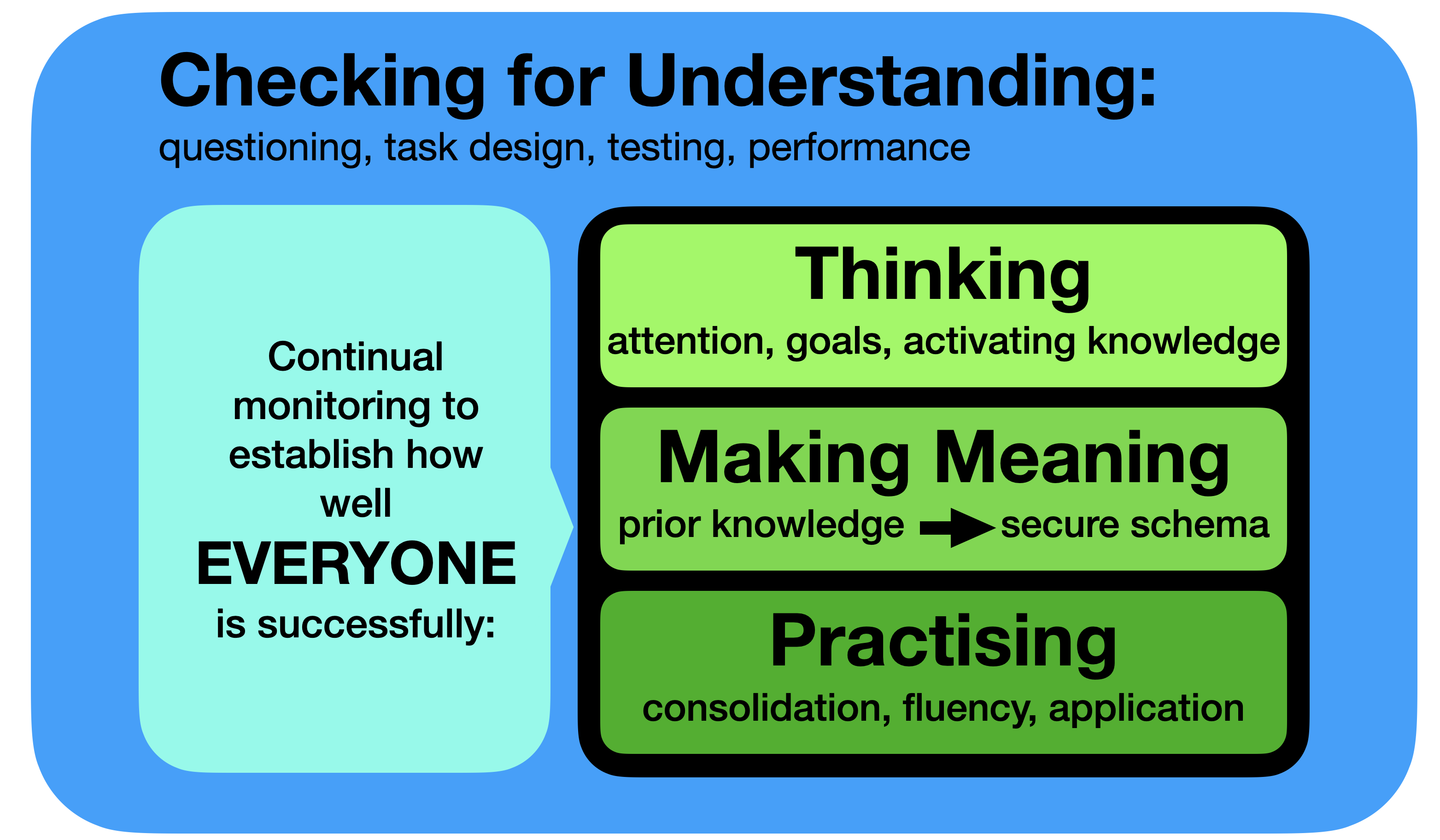 Is everyone making meaning? – successfully making sense of the ideas for themselves, bridging from what they knew before to a place where their schema are more secure, deeper and wider