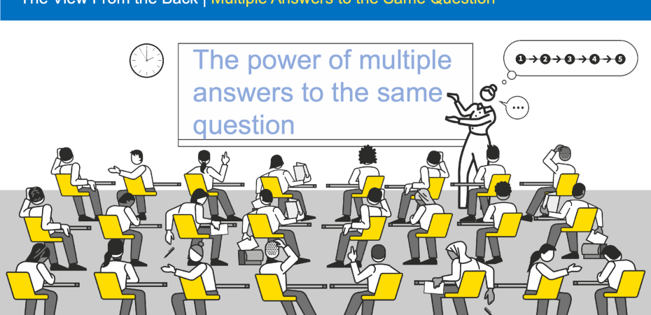 A common observation from the back is how often in a lesson a teacher will hear only one person’s answer to a question and then assume that, with the answer having been said aloud, everyone else will now know it. It’s common for teachers to tell me they feel that it would be weird or pointless to repeat a question that’s just been asked.