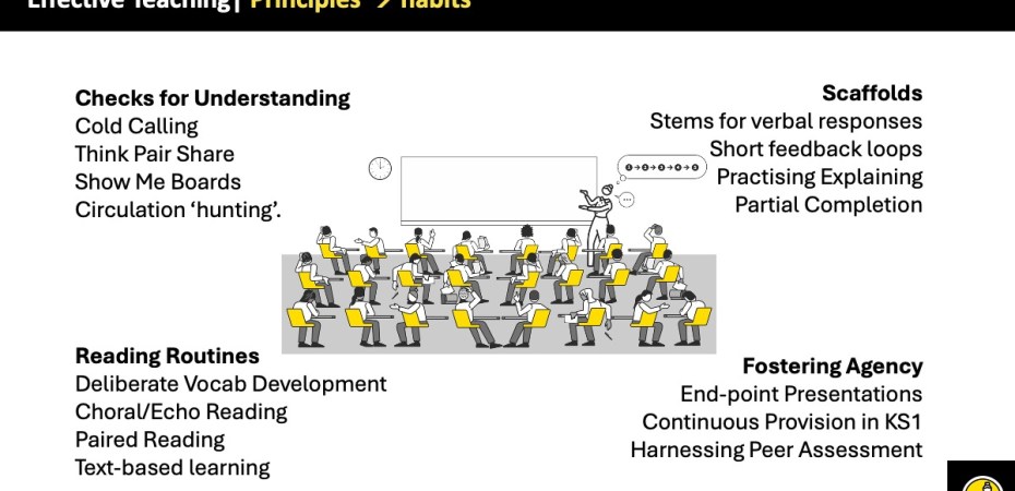 Over the last year or so I’ve seen some fabulous teaching. From Reception to Year 13 and FE settings of many kinds; there’s so much superb teaching to celebrate. This post is an attempt to capture some of details of that. Of course you often find teachers with superb class relationships and great charisma and subject knowledge – but it’s mostly solid everyday practice that interests and impresses me; teachers crafting and blending techniques that systematically involve all students and support every single child to experience success.