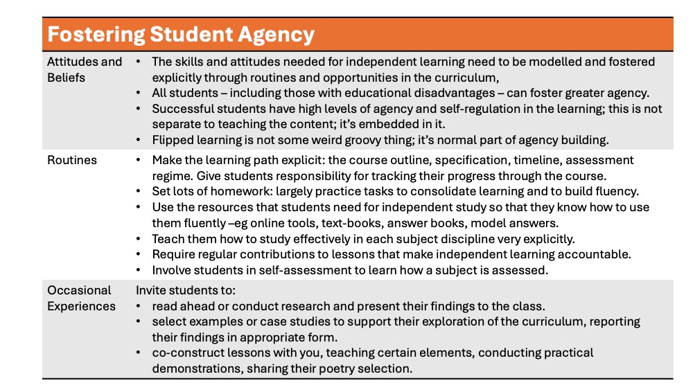 • developing agency: nope – all that ‘flipped learning’ is just brain gym etc etc.