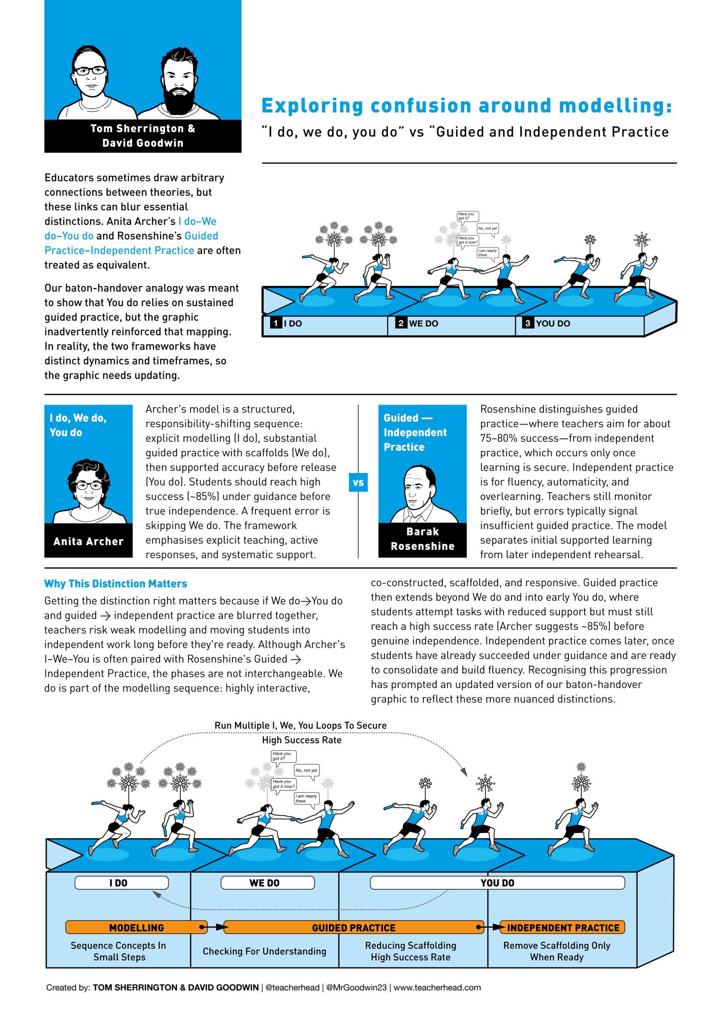 In the last couple of days I’ve seen a couple of resources posted online that made me question my understanding of the idea of ‘I do, we do, you do’ and how this fits with ideas of guided and independent practice. Both of the resources made this direct connection:
