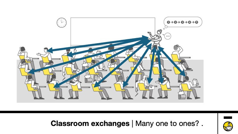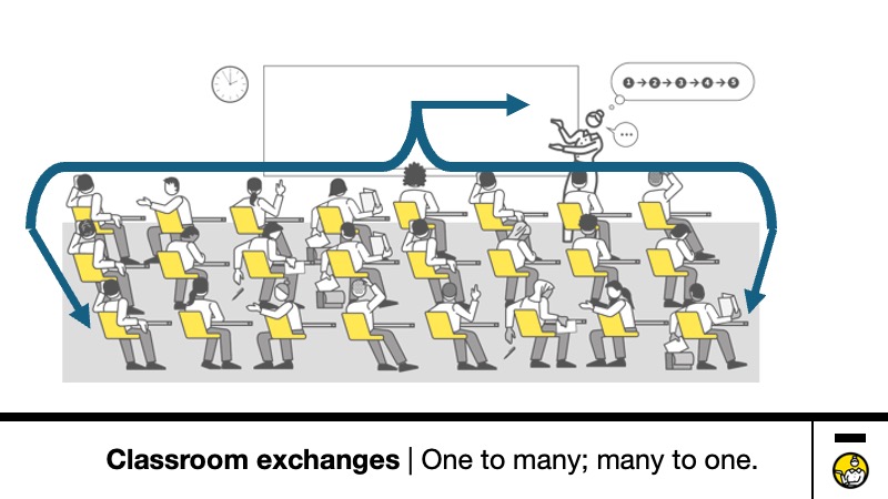 - Teacher engaging with the whole class – with limits on how interactive this can be.