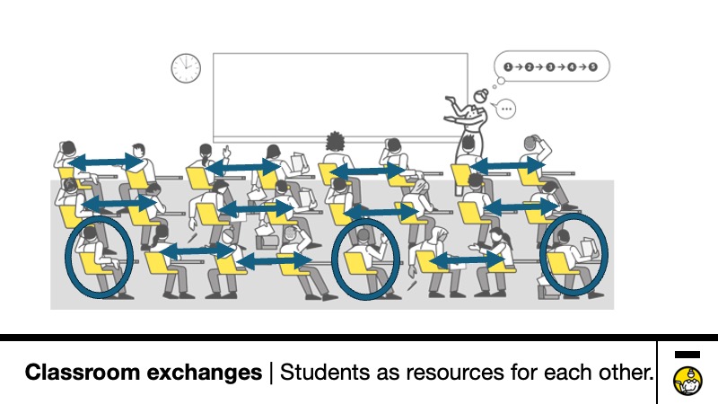 - Teacher engaging with individuals – with limits on how many students can be involved except in specific instances like with Show-Me Boards.