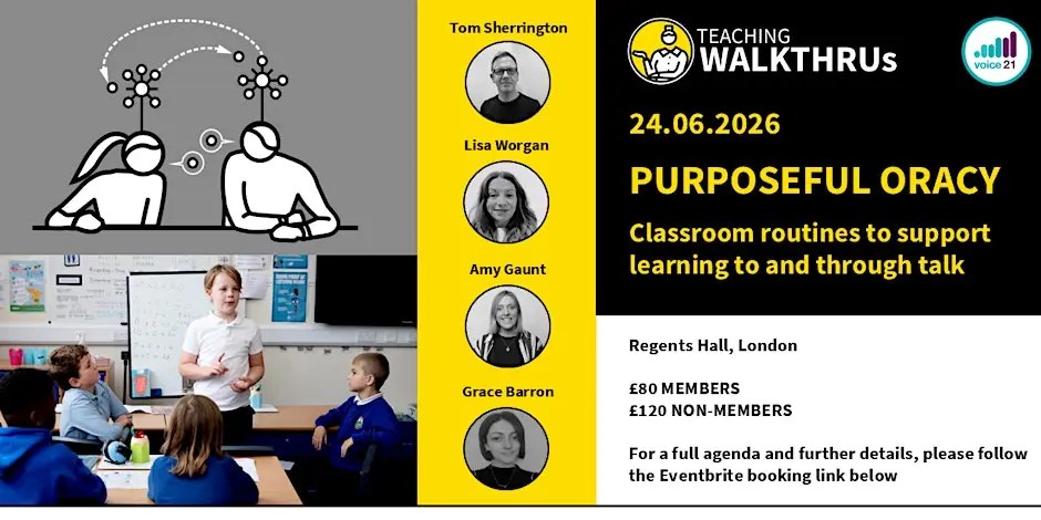 Voice 21 x WalkThrus. Purposeful Oracy. Live. London June 24th.