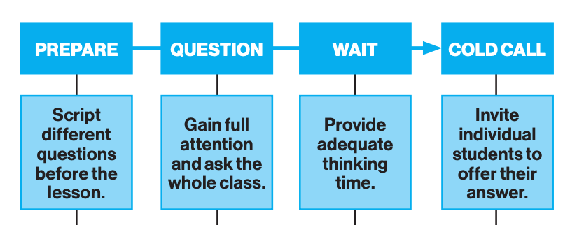 So, the codified sequence. suggested is: Ask a question; all students have time to think; then call on someone to respond.